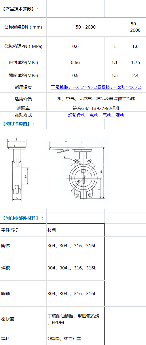D71X不銹鋼蝶閥】采用雙偏心結構,具有越關越緊的密封功能,密封性能可靠。密封副材料選用不銹鋼和丁腈耐油橡膠配對,使用壽命長。橡膠密封圈即可位于閥體上,也可以位于蝶板上,可適用不同特點的介質,供用戶選擇.【D71X不銹鋼蝶閥】蝶板采用框架結構,強度高,過流面積大,流阻小。整體烤漆、能有效地防止銹蝕且只要更換密封閥座密封材料,就可使用于不同介質。本閥具有雙向密封功能,安裝時不受介質流向的控制,也不受空間位置的影響,可在任何方向安裝。本閥結構獨特,操作靈活,省力,方便。