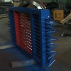 本棒條閘門結構簡單,易操作,無卡阻,能隨時調(diào)整通過物粒的大小。采用優(yōu)質(zhì)型鋼焊接,剛性強、使用壽命長、基本無維修量, 是中小型晶狀、塊狀物料控制的理想設備。本閥是根據(jù)建材、選礦、冶金等行業(yè) 對中小型固體塊狀物料的輸送、控制、篩選、給料等工藝的需要而研制的一種新型閘門, 適用于≤50mm物料控制。